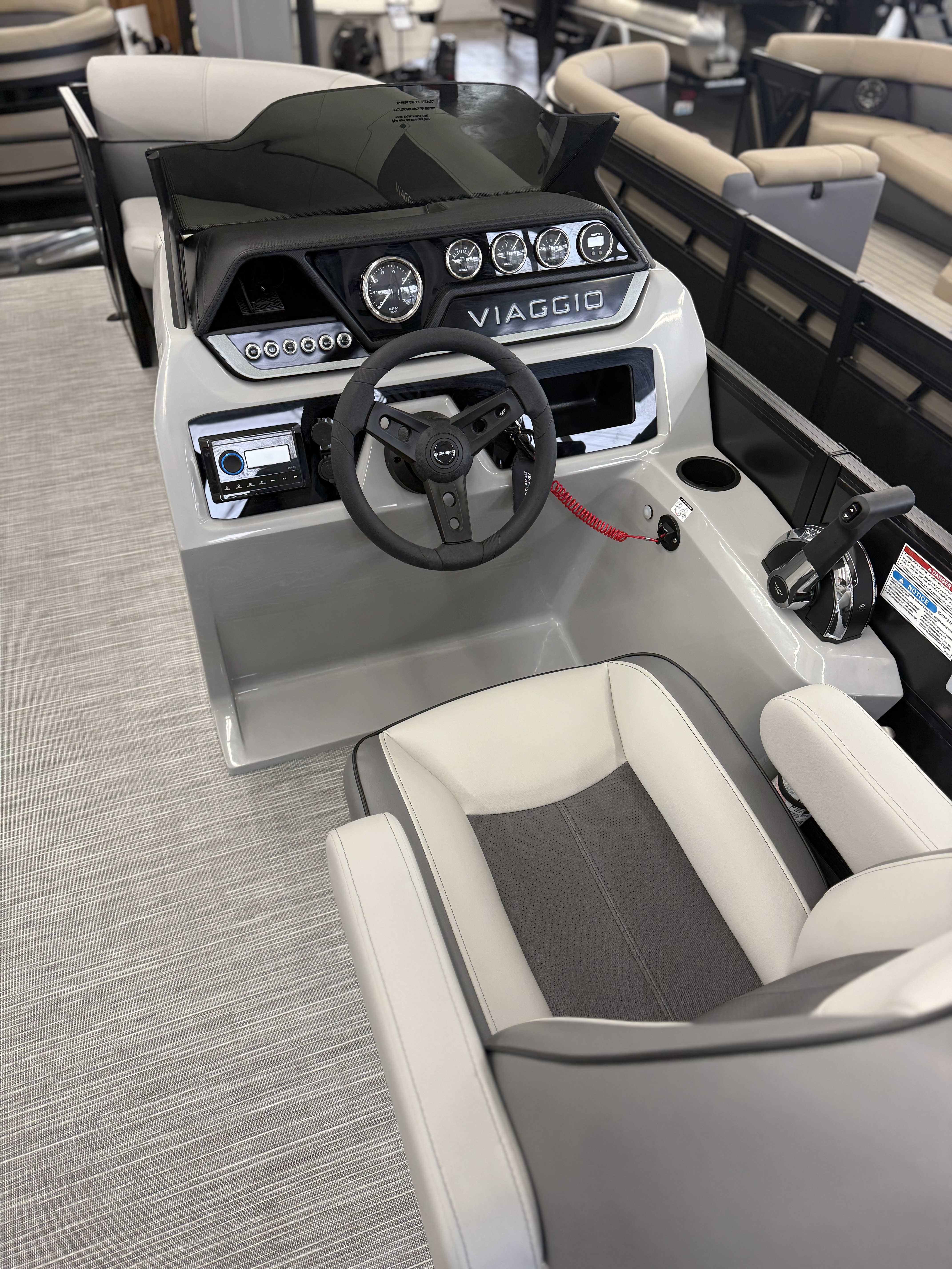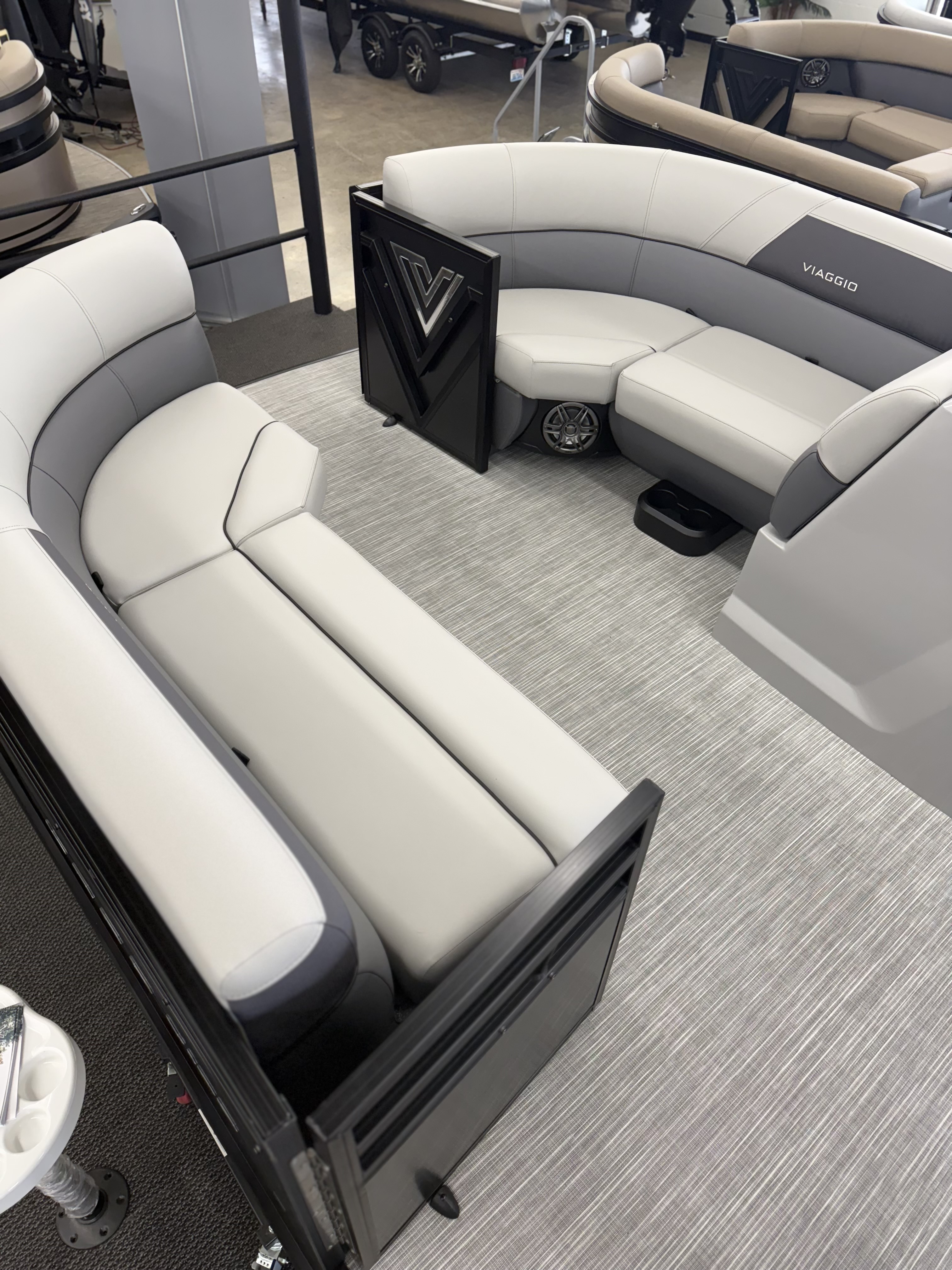 Our Lago V C Model is loaded with standard features and one of the most affordable pontoon boats anywhere.