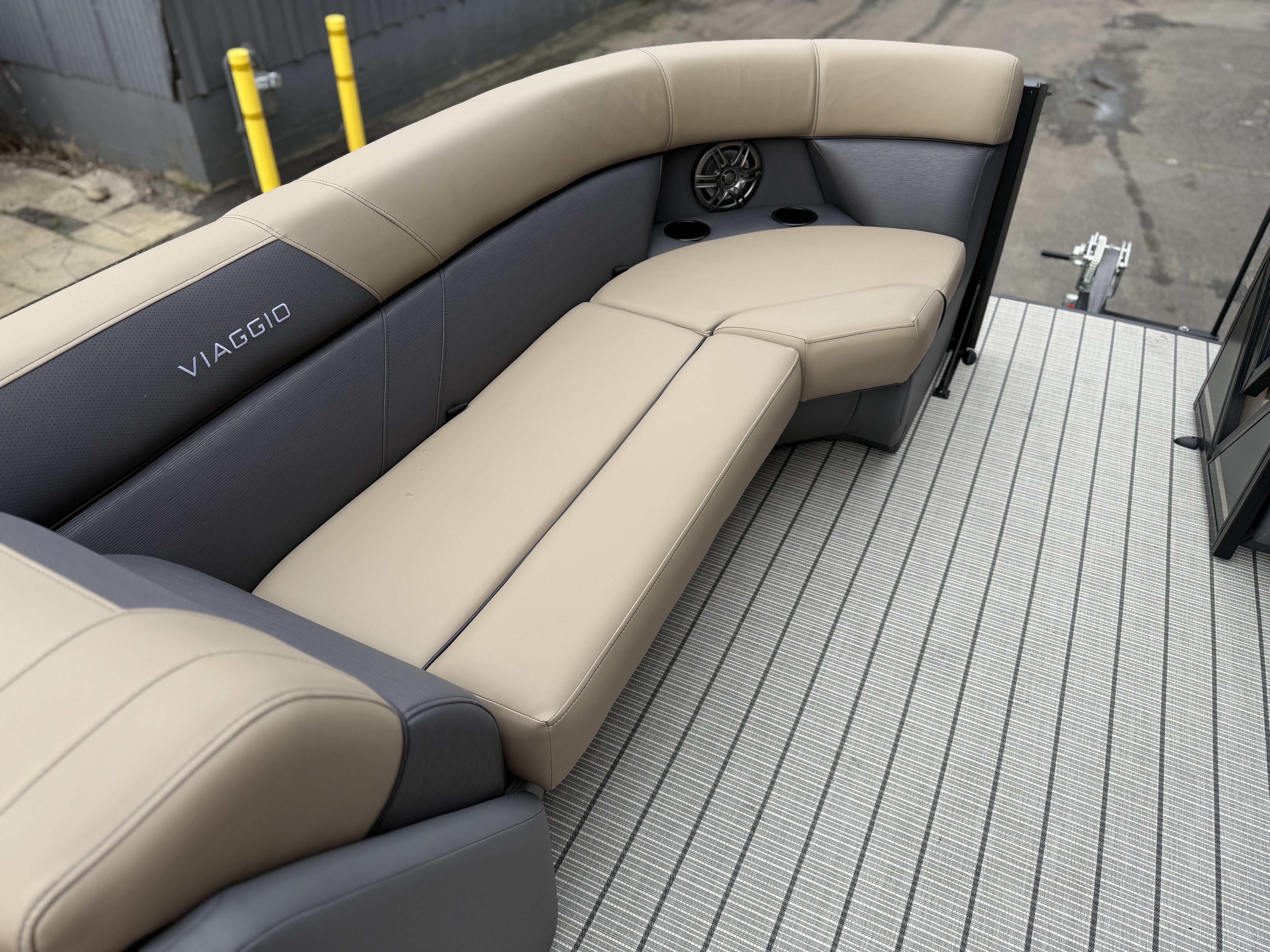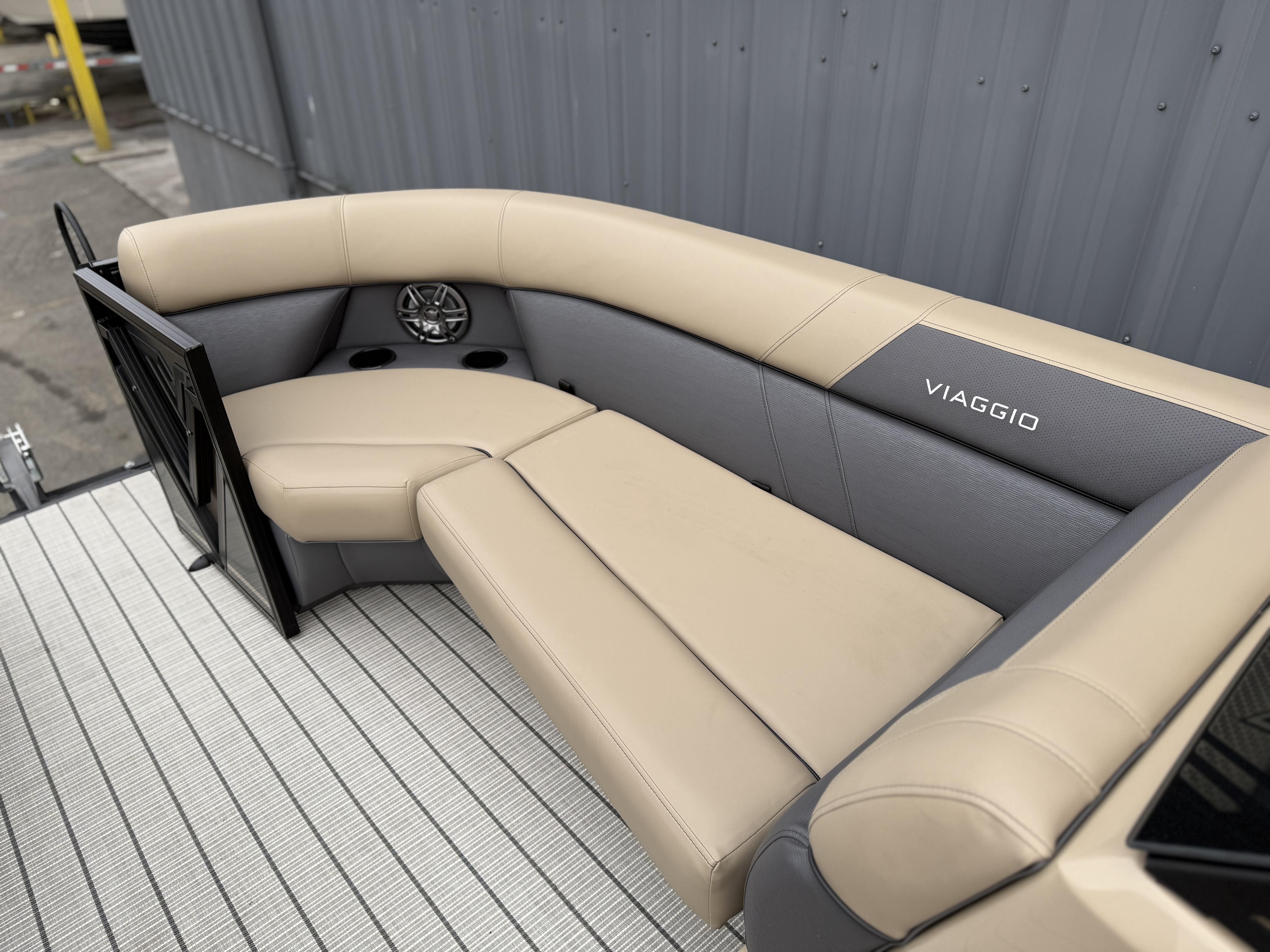 - Integrated Cupholders and Speakers in Bench Seating